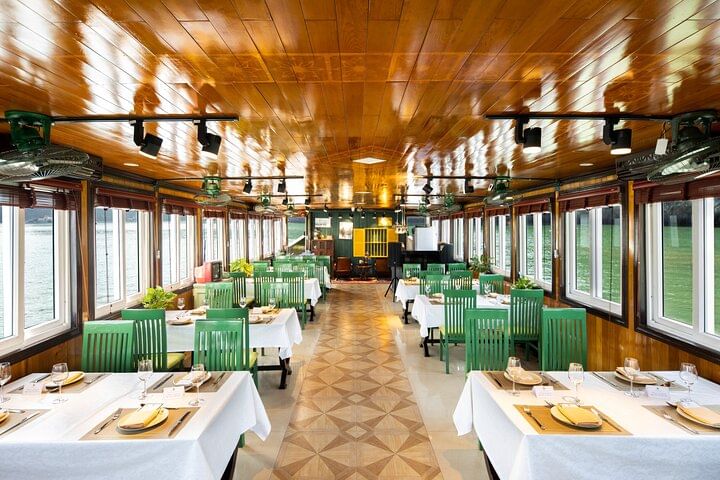 We provide a comprehensive 7-hour itinerary, allowing guests to immerse themselves in the stunning landscapes of Ha Long Bay. The adventure includes exploring Sung Sot Cave, embarking on a thrilling kayaking journey to Trinh Nu Cave, indulging in a refreshing swim at Trinh Nu Beach, and taking in the breathtaking views of Ti Top Island. Beyond this exceptional itinerary, what sets Cong Cruise apart is the opportunity for guests to fully embrace the ambiance of Vietnam's historical past. The cruise is adorned with decorations and furnishings reminiscent of the subsidized economy era, providing a unique window into the old Vietnamese culture.
